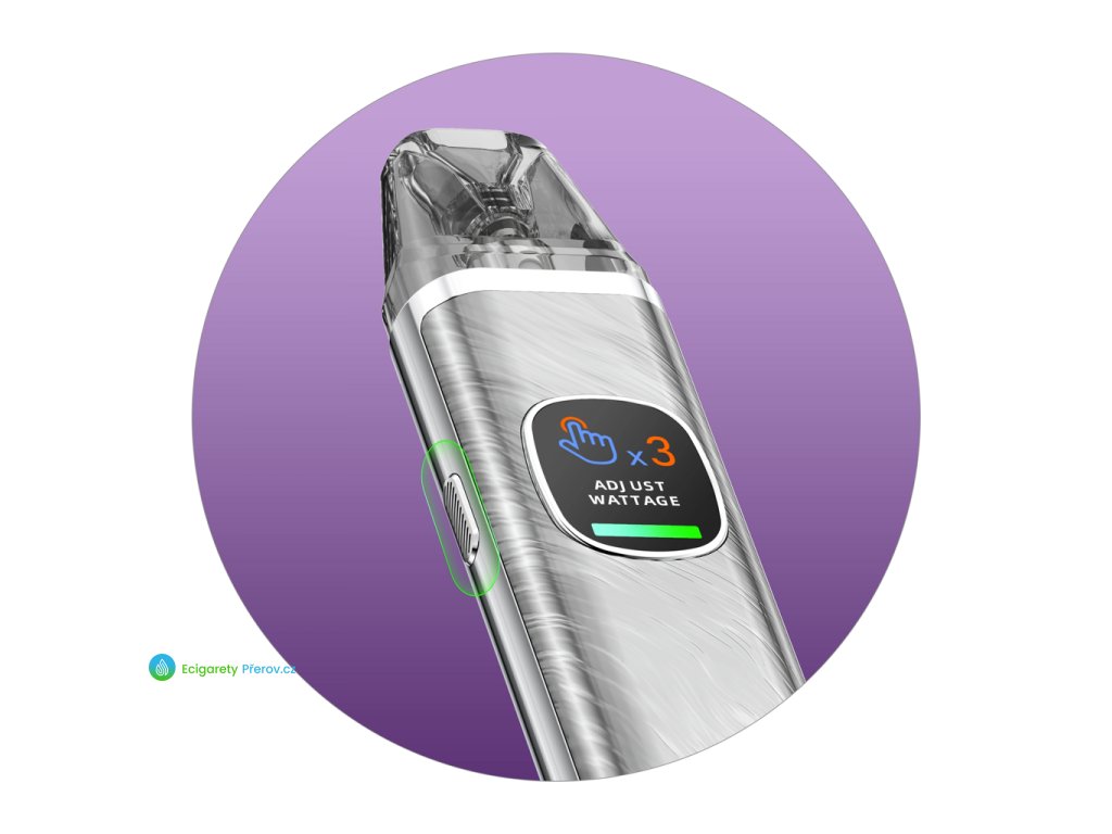 Jedna z bočních částí e-cigarety Xlim Pro 2 disponuje velkým ovládacím tlačítkem, které slouží pro ovládání a nastavení e-cigarety. Pomocí tlačítka si snadno upravíte výstupní výkon, změníte schéma celého zařízení, nebo si můžete vynulovat počítadlo potahů. Tlačítko slouží také pro rychlé zapnutí a vypnutí tradičním stiskem 5x rychle za sebou.