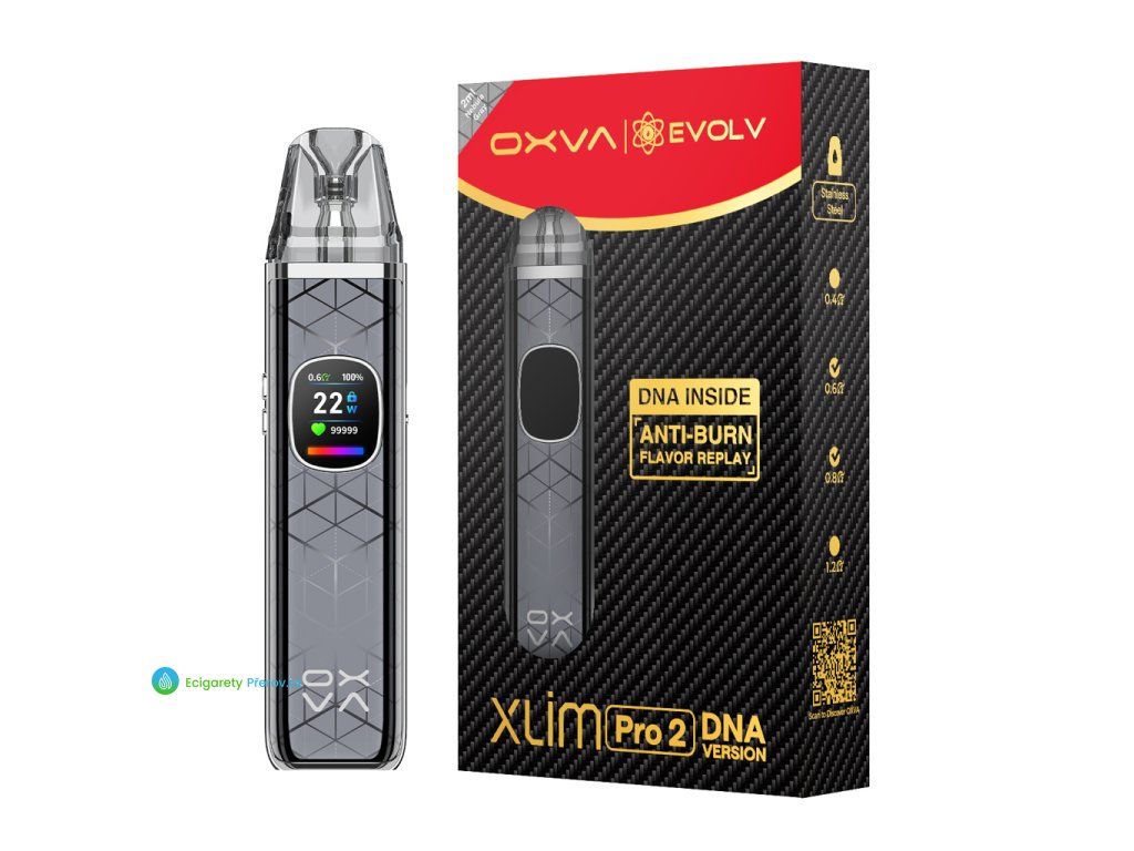 Dlouho očekávaná spolupráce výrobců OXVA a Evolv je konečně tady. Přivítejte OXVA Xlim Pro 2 DNA Pod Kit, revoluční pod systém vybavený jedním z nejkvalitnějších čipů na trhu, Evolv DNA. Tento moderní čip v těle dodá naprosto přesné výsledky při vapování s precizní teplotní kontrolou. S pokročilou technologií Replay se zase můžete těšit na přesnou reprodukci chuti při každém potahu. Zažijte moderní vaping v kompaktním a mnohokrát oceněném podu a užívejte si pokročilé možnosti vlastního nastavení díky podpoře počítačového softwaru Escribe. Užívejte si každý potah s plnější a výraznější chutí díky novým cartridgím Xlim Top Fill SS a posuňte vapování na profesionální úroveň.