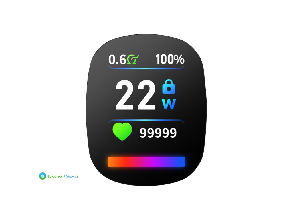 Tělo je poháněno integrovanou baterií o kapacitě 1300 mAh, která zajistí hladký provoz a dlouhou výdrž. Díky čipsetu DNA se můžete těšit také na perfektní power management a ještě delší výdrž proti konvenčním pod systémům. Samozřejmostí je potom také podpora rychlého dobíjení s moderním USB-C rozhraním a podporovanými parametry adaptéru 5V / 2A.