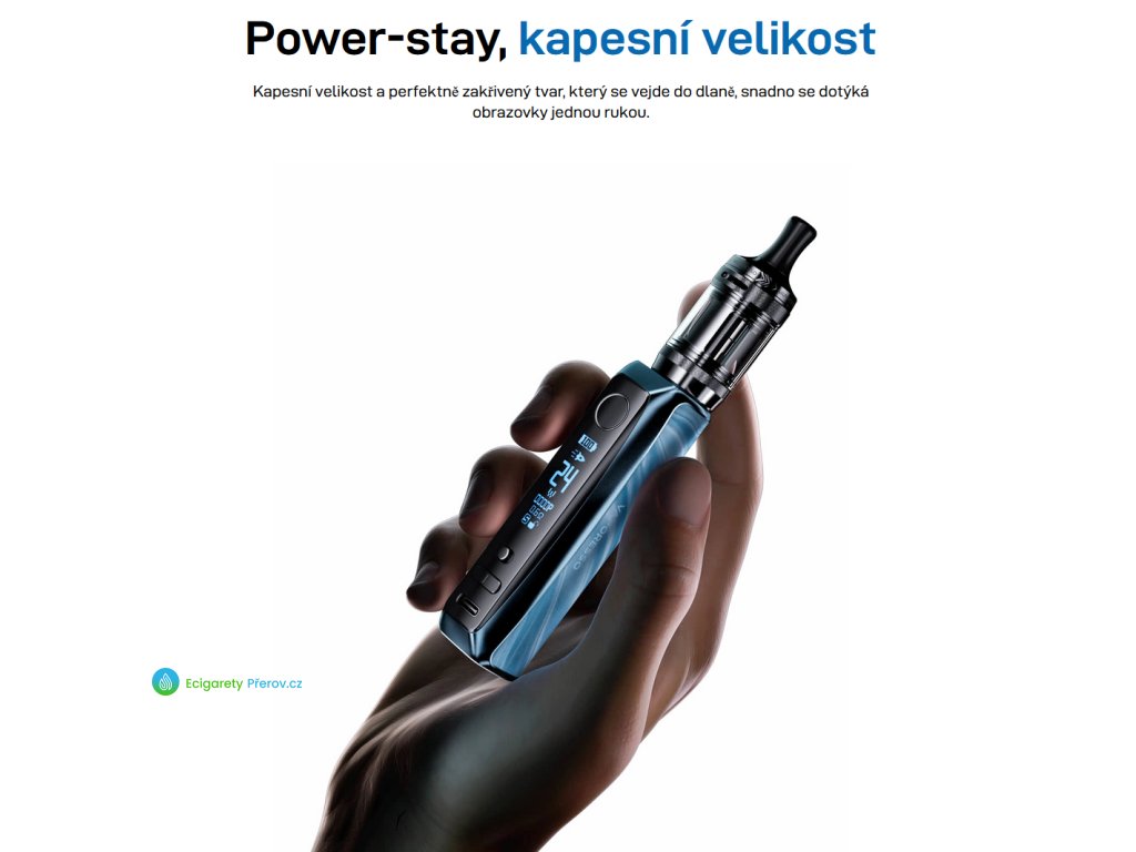 Uvnitř se ukrývá silná integrovaná baterie s kapacitou 3000mAh, která zajišťuje dostatek energie pro celodenní vapování. Nabíjení probíhá rychle a jednoduše pomocí moderního USB-C portu. Zařízení je vybaveno 0,87palcovým OLED displejem, který přehledně zobrazuje všechna důležitá nastavení, včetně výkonu, odporu a stavu baterie. Pomocí funkce Smart zařízení automaticky rozpozná odpor žhavící hlavy a nastaví vhodný výkon. ECO mód pak umožňuje manuální úpravu výkonu podle preferencí uživatele. Jedinečný Pulse režim Vám zase dodá konstantní výstupní napětí pro optimální produkci chuti a páry.