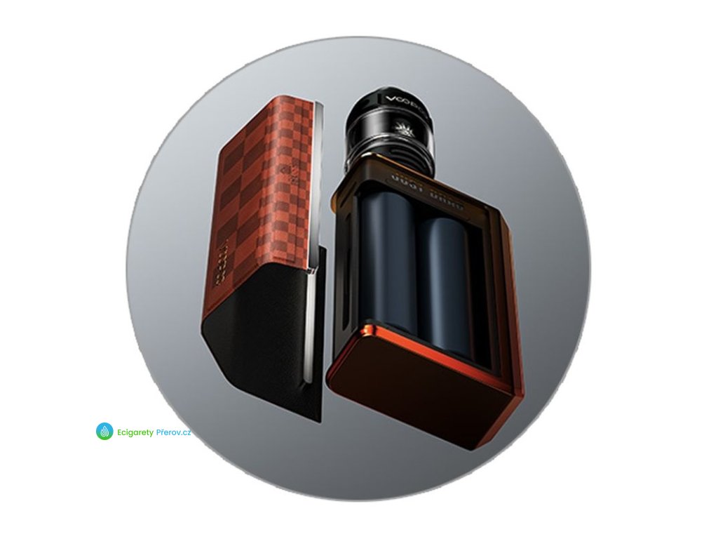 Elektronická cigareta - DL potah, 2x slot pro 18650, objem 5,5ml, manuální spínání, výkon 5-177W, dobíjení USB-C, regulace air-flow, displej, bohatá nabídka režimů, teplotní TC režim, inteligentní kontrola stavu baterií, manuální zámek, platforma PnP-X.